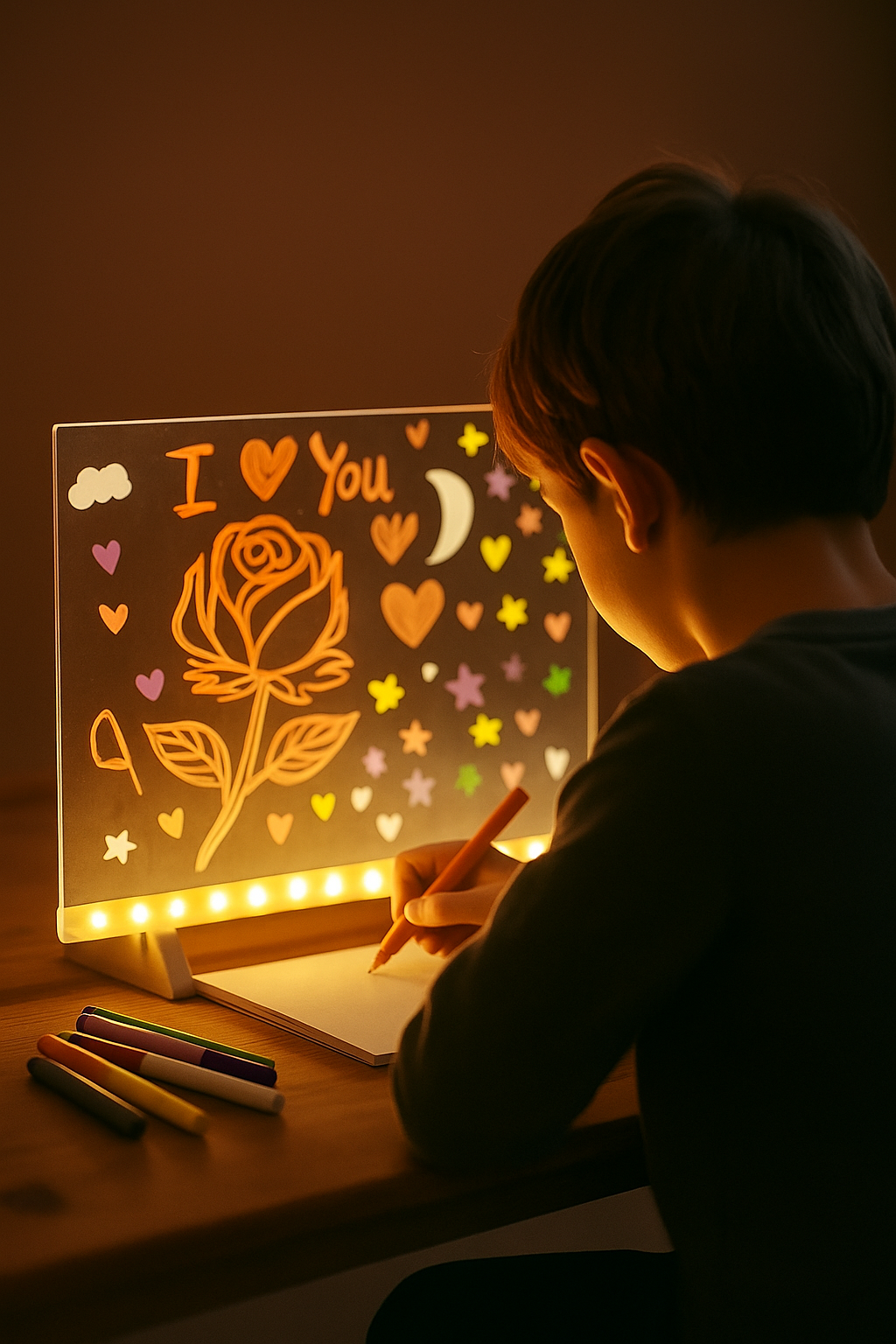 Découvrez la tablette lumineuse qui fait briller la créativité de toute la famille. Recommandée par des experts en développement de l’enfant et plébiscitée par les parents, elle offre un support magique pour dessiner, noter ses idées, planifier sa journée ou simplement décorer sa pièce. Utilisable dès le plus jeune âge, elle séduit aussi les grands grâce à sa lumière apaisante et son style unique. Veilleuse, pense-bête ou tableau de créativité : à chacun son usage. Laissez place à la fantaisie, aux couleurs et à la douceur de la lumière 💫.